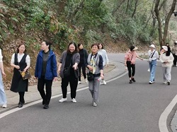 会后,公司党委书记赵娟娟带领女教工到东湖磨山开展户外踏青活动。春天的磨山,树木吐露新芽,花儿姹紫嫣红,道路曲径通幽,亭台楼阁相互交错,石雕石刻等人文观景与自然景观交相融合,美不胜收。女同胞们三五成群,欢声笑语,或聊天交心,或在花间留影,放松身心融入美丽的大自然,处处展现美与和谐。