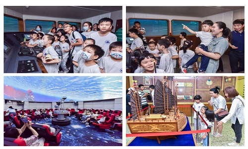第二部分,参观博物馆和实验室。在老师和家长们的陪同下,小朋友们先后来到公司六自由度航海模拟器、航海博物馆、天象馆四楼天象厅进行参观,实地接触家长们工作的环境,涉猎小众的航海领域知识,处处充满了好奇,感受到家长们工作的了不起。他们通过各种古船模型了解生动的船舶发展史,体验海上驾船迎风斗浪的乐趣,感知浩渺星空、广袤宇宙的神秘……一张张天真无邪的笑脸,一双双充满求知欲的眼睛,一声声充满惊喜的赞叹,洒遍了实验室和校园沿途的角落,感染了平时辛勤工作、疏于陪伴孩子的家长们。