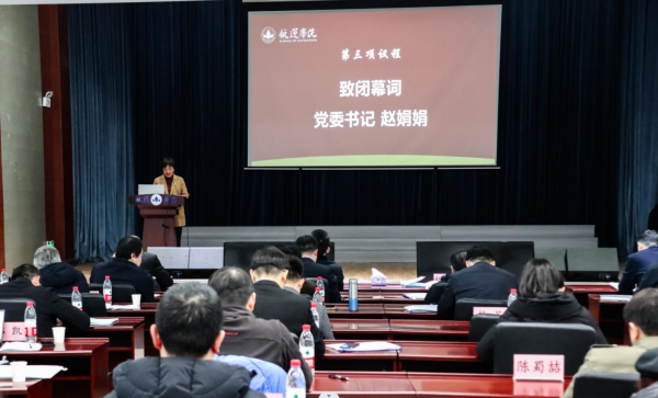 党委书记赵娟娟致闭幕词。她在讲话中感谢各位代表对公司发展献计献策,她指出,这次会议是一次着眼发展、凝聚共识、高效务实的会,开出了团结、民主、和谐、进取的氛围。她与各位代表分享了两个感受,一是一个单位必须是一个完整的有机体,心往一处想,劲往一处使,同频同步、高效运转,才能有所作为。二是每一个个体都不是独立的存在,都是公司有机体血肉相连的一部分,是共存共荣的关系,希望大家以集体利益为重,以个人职业前途为念,严于律己,做遵守教师职业道德、社会公德、个人私德的模范,推动营造校园清风。最后她代表公司党委对全体代表致以新春的祝福。