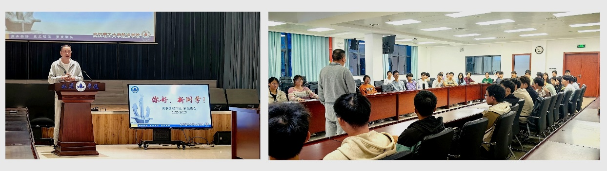 翁老师向新生介绍海事管理专业人才培养目标和课程设置基本情况,让新生对专业形成更直观的认识,同时还介绍了海事管理专业主要的就业方向,引导同学们要全面发展,重基础、宽口径,扎实学习学习专业知识,提升创新能力、实践能力和社会适应能力。翁主任对2023级的新生们提出了殷切的期望。
