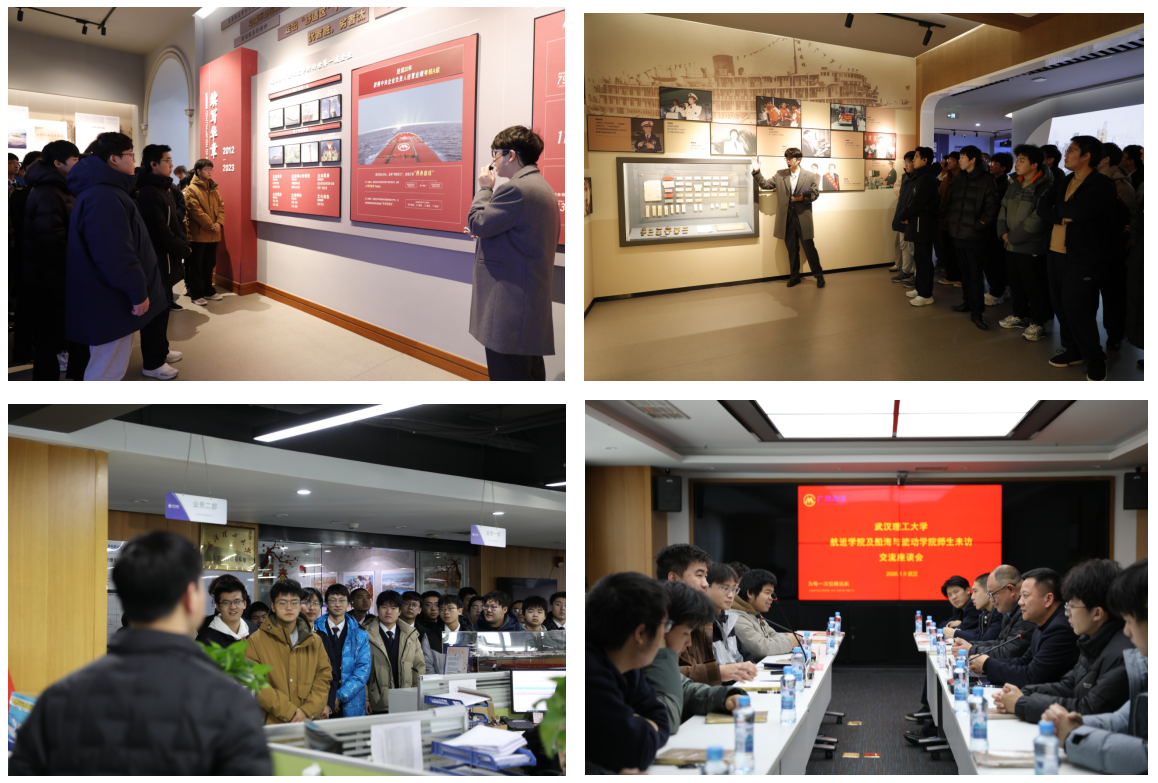 师生代表首先前往招商局长江历史文化中心进行参观,通过讲解深入学习了招商局的发展历程,重点了解了抗日战争期间沉船长江、海辽轮起义、伊敦轮首航等具有历史意义的事件。随后,师生一行前往武汉海顺海事服务公司,与公司工作人员开展座谈,进一步了解招商轮船的运营现状,并围绕公司实习、船上生活、知识储备等方面进行了交流。