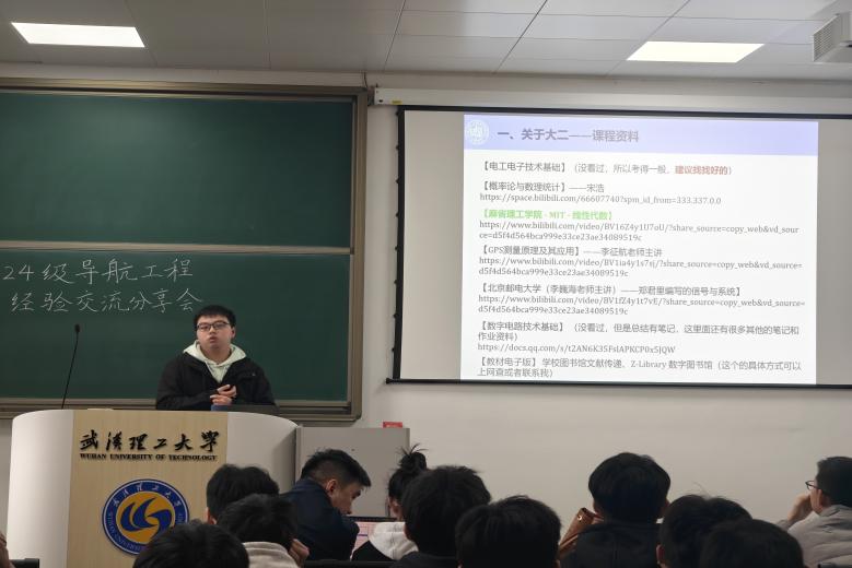 为进一步帮助24级导航工程专业同学明晰学习方向,提升专业素养,2025年3月29日下午,24级导航工程2401班与2402班在主楼316开展“导航工程经验交流分享会”。本次活动由导航2401班长吴俊杰、2402班长李泽正和辅导员邓晓光组织,24级导航工程全体同学共同参与。