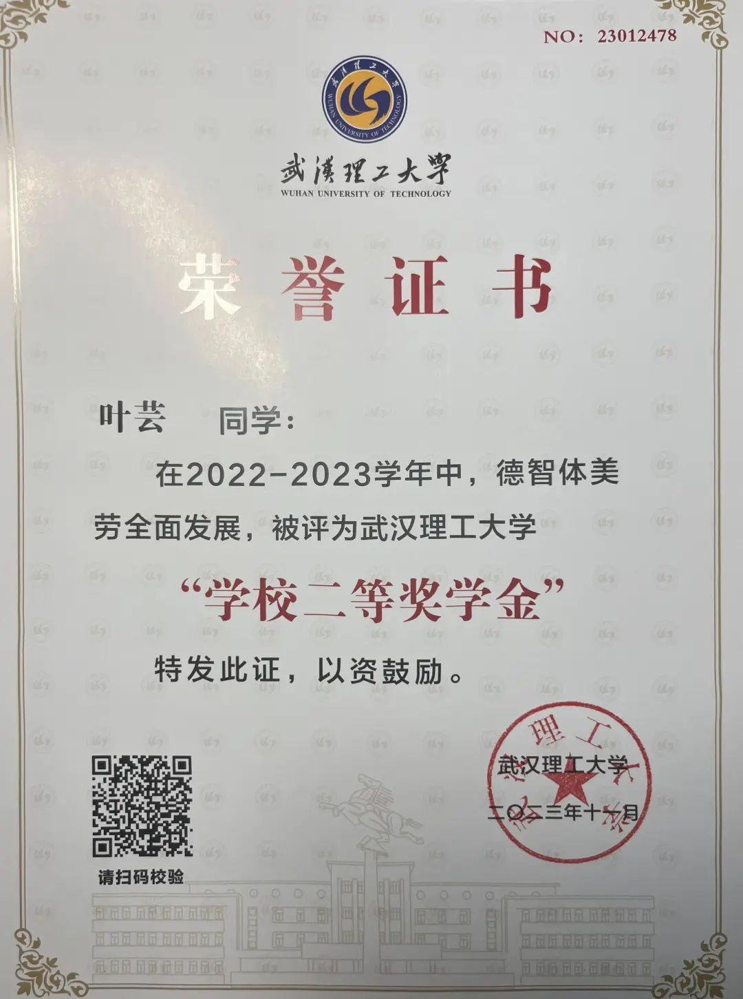 同时在课程学习中,叶芸坚持用系统思维学习,针对专业课程建立模块化知识体系,通过思维导图和多元案例深化理解,不断提升学习效率,深化对专业知识的理解。保持着对专业课程一贯的热情,她在大学期间获国家奖学金、校二等奖学金、校三好员工等荣誉称号。