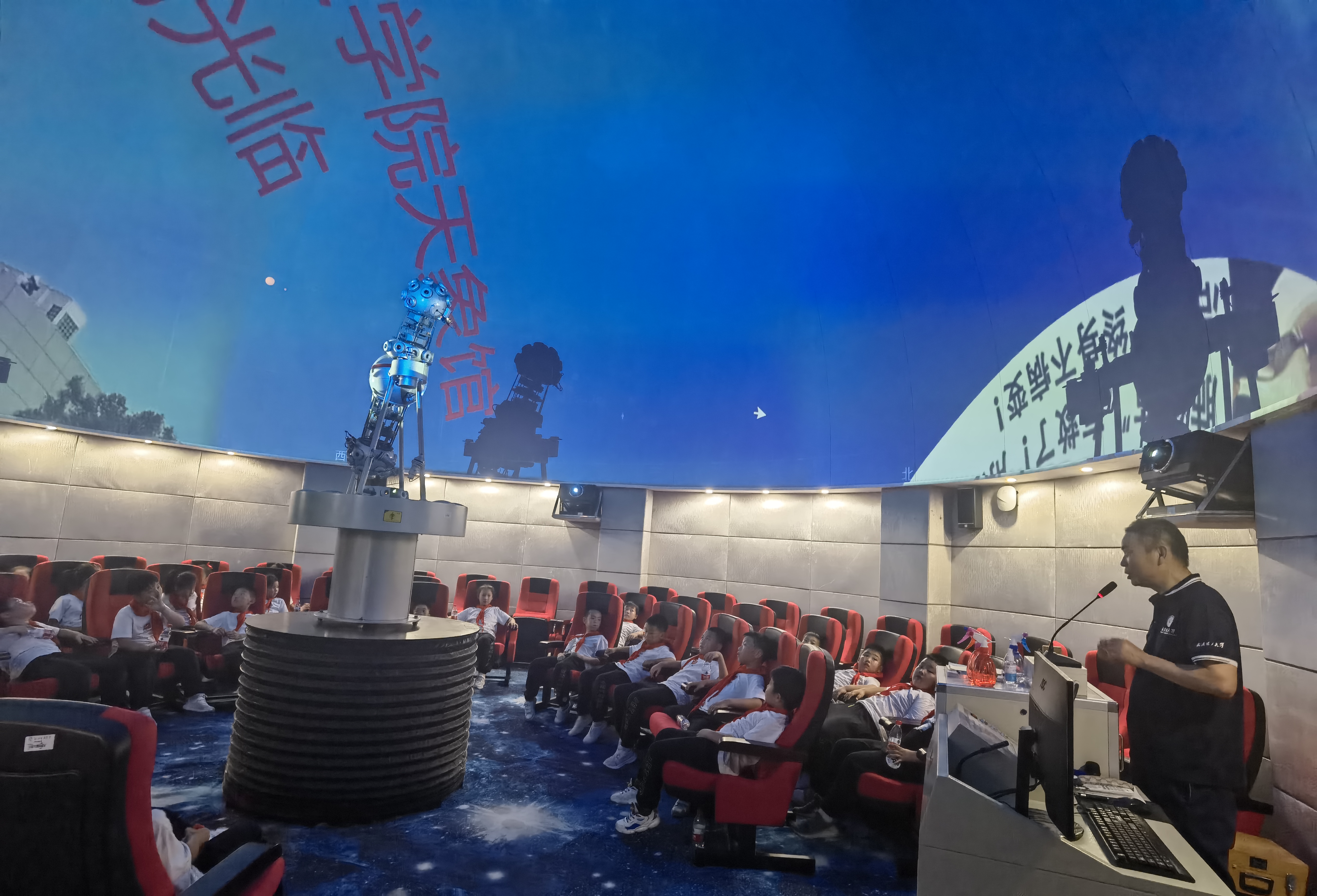 首先同学们参观了数字天象馆,bevictor1946韦德官网翁建军教授通过数字天文模拟器向少先队员们展示了浩瀚的宇宙,通过带领同学们辨识星座、了解二十四节气等,引导同学们思考,引起同学们的广泛讨论,现场不断传出惊叹声和谈论声。随后同学们来到了全任务大型船舶操纵模拟器实验室,关宏旭老师向少先队员们详细地介绍了操纵模拟器的原理,驾驶台上各种仪器的用途以及各项指示灯的含义。少先队员们听得津津有味,不时发出惊叹。最后在关老师的指导下,少先队员们亲身上阵操作船舵,切身感受驰骋在海洋中的奇妙。