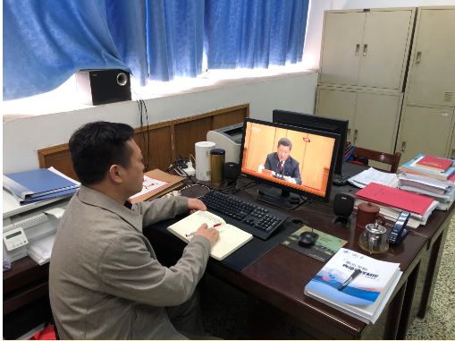 图1 郝勇教授在办公室观看习近平总书记讲话直播